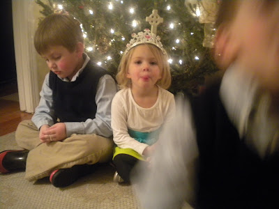 And to add insult to injury, Eleanor looks like she has a Celtic cross growing out of her head (ornament courtesy of a wedding we attended in 2001 – continued best wishes to you, Cathleen and Sean!) Her princess crown from Target helps, but I may have to attempt some Photoshop editing.